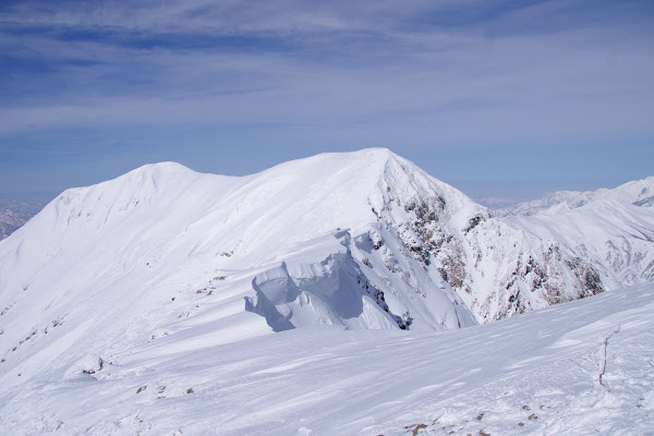 ピーク到着です。昔は北斜面なんて滑る人いなくて、数日パウダー残り放題だったのですが、今はもう続々と皆向かいます。のんびりしてられないです。。