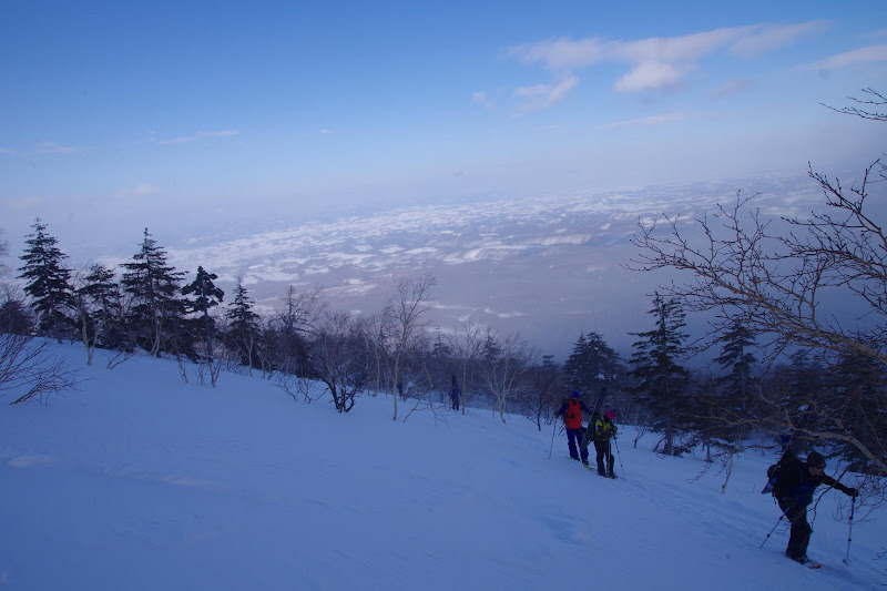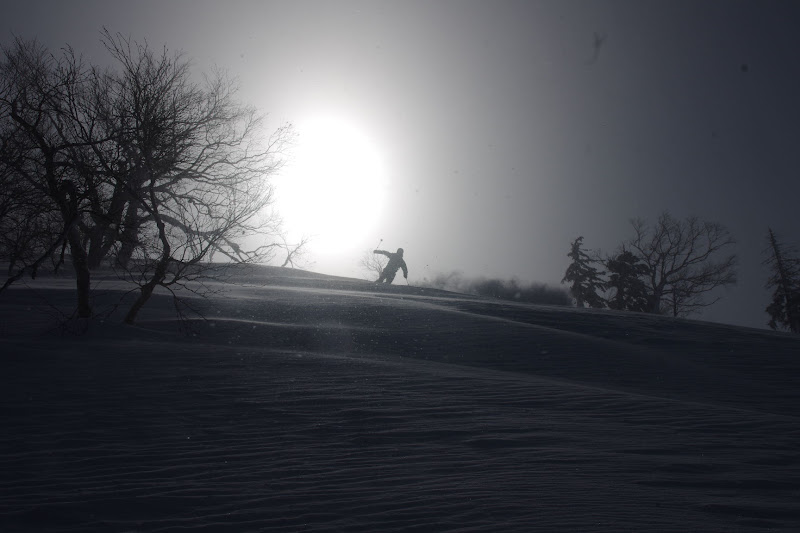 それでも最初の一本はパウダーを楽しめました。あとはちょっとカリカリなところが多かったかなぁ。標高高いところは風に飛ばされてたようで、中腹以下のほうがふかふかでした。