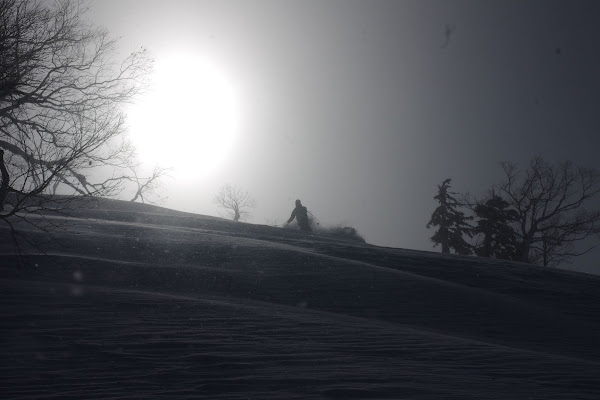 雲間から薄日も差して距離短めながらも素晴らしいパウダーが楽しめました。