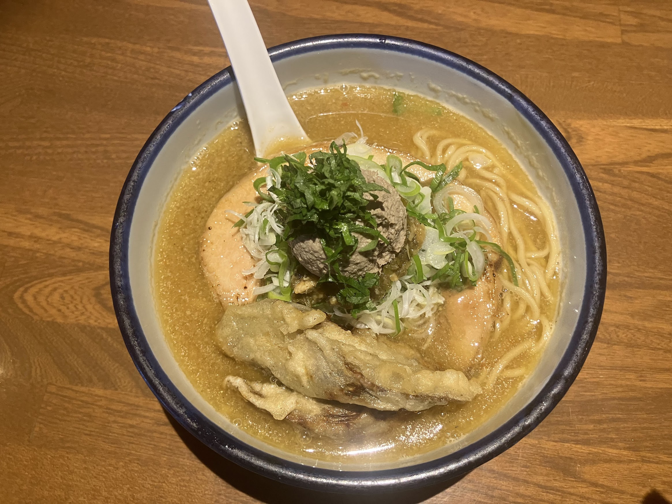 サクサクの食感と、牛蒡特有の香ばしさがスープの旨味とピッタリ合います。これがただの飾りではなく、一杯の完成度を高めるための重要な要素になっているのが素晴らしいです。