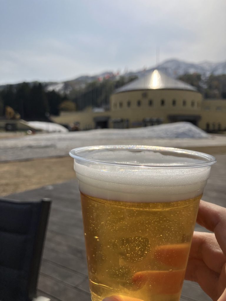 外で生ビール売ってたんですけど、ナッツとのセットがお得でした(500円で生ビールと山盛りナッツ)