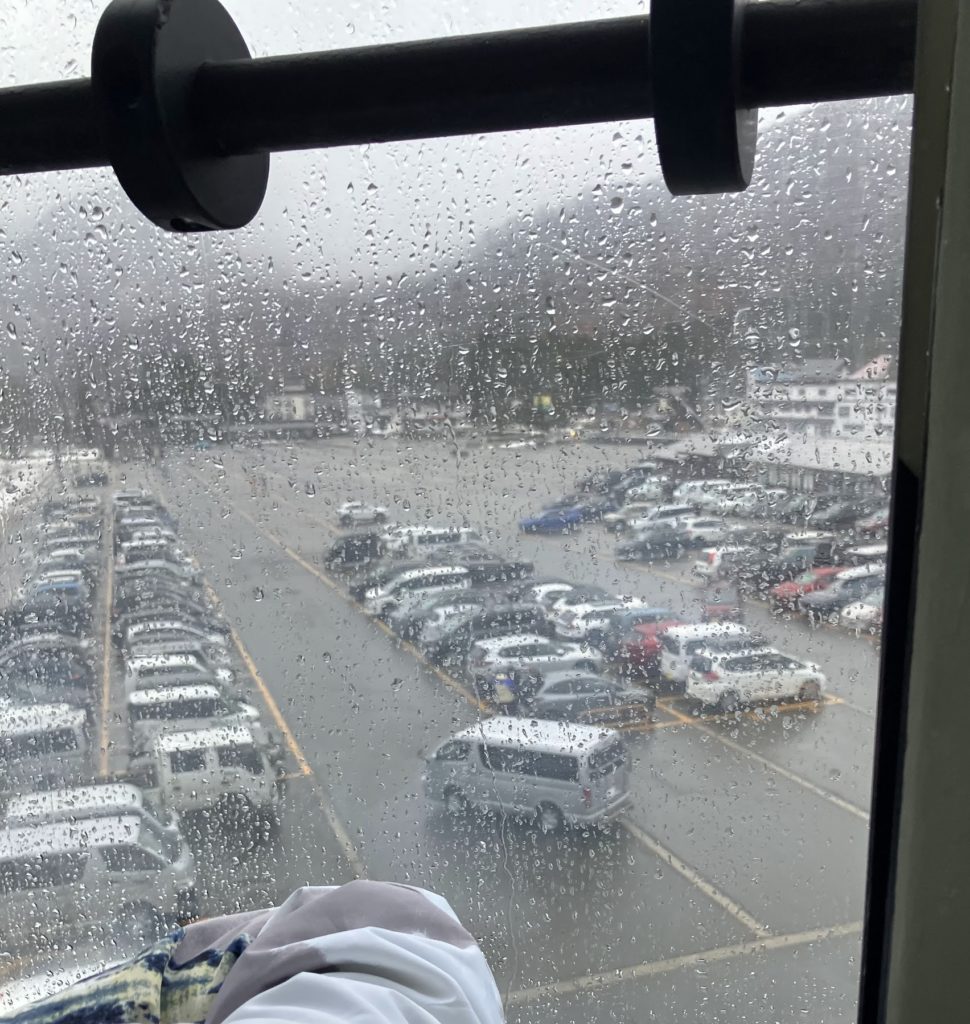 まずは、越後湯沢のかぐらスキー場へ。駐車場は雨の影響で空いていて、ラッキーでした。