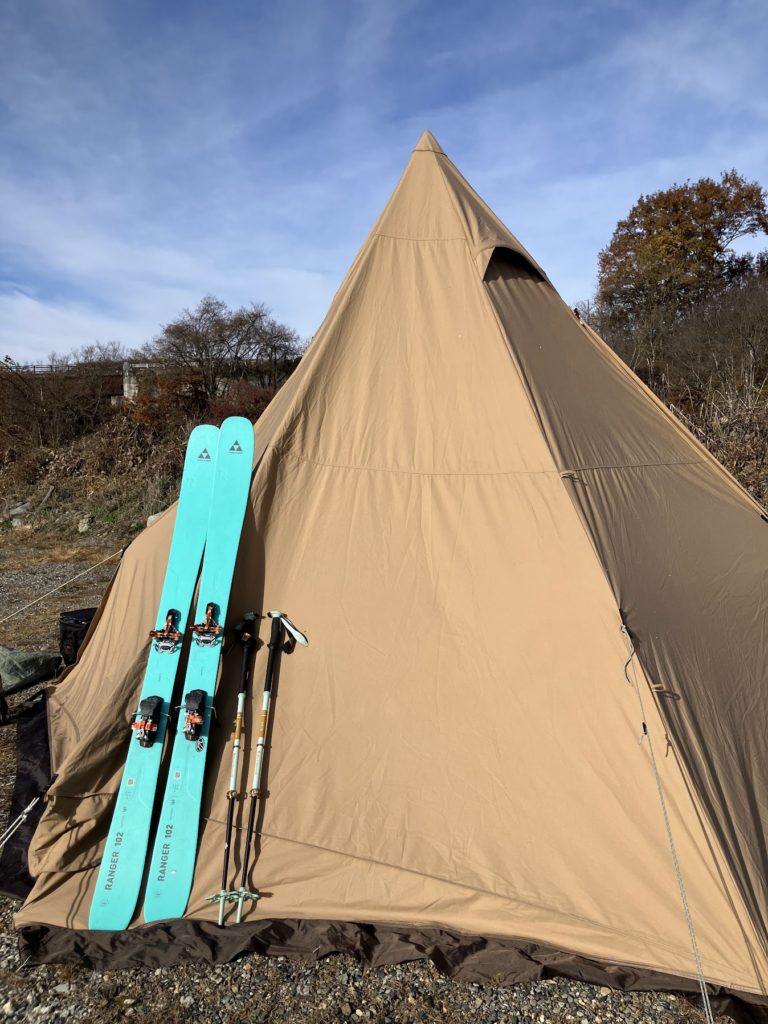 車から湯気が立つほどの冷え込みでしたが、テント内の居住空間は快適。早シーズンのスキー&キャンプは、料金も安く、パウダー狙いじゃないから気楽に楽しめます。3月頃にまたやりたいですね。